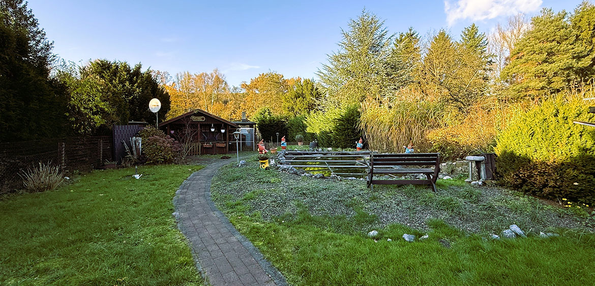 Der weitläufige Garten lädt zum Entspannen und Verweilen ein