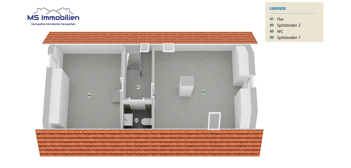 Dachgeschoss sowie den ausgebauten Spitzboden. Insgesamt