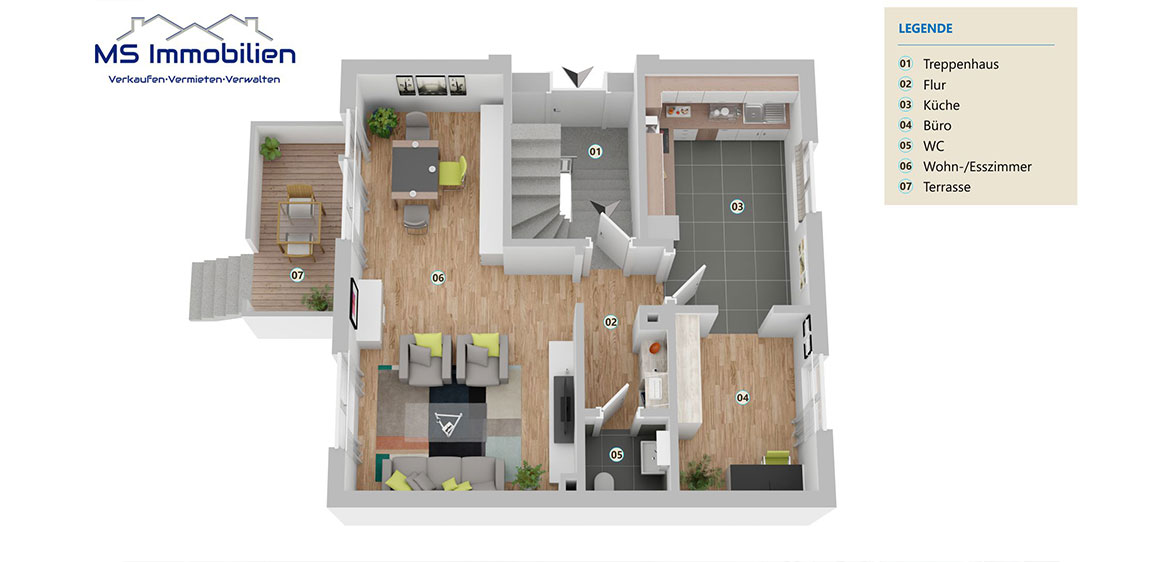 Im Erdgeschoss befinden sich die zentralen Wohnbereiche mit