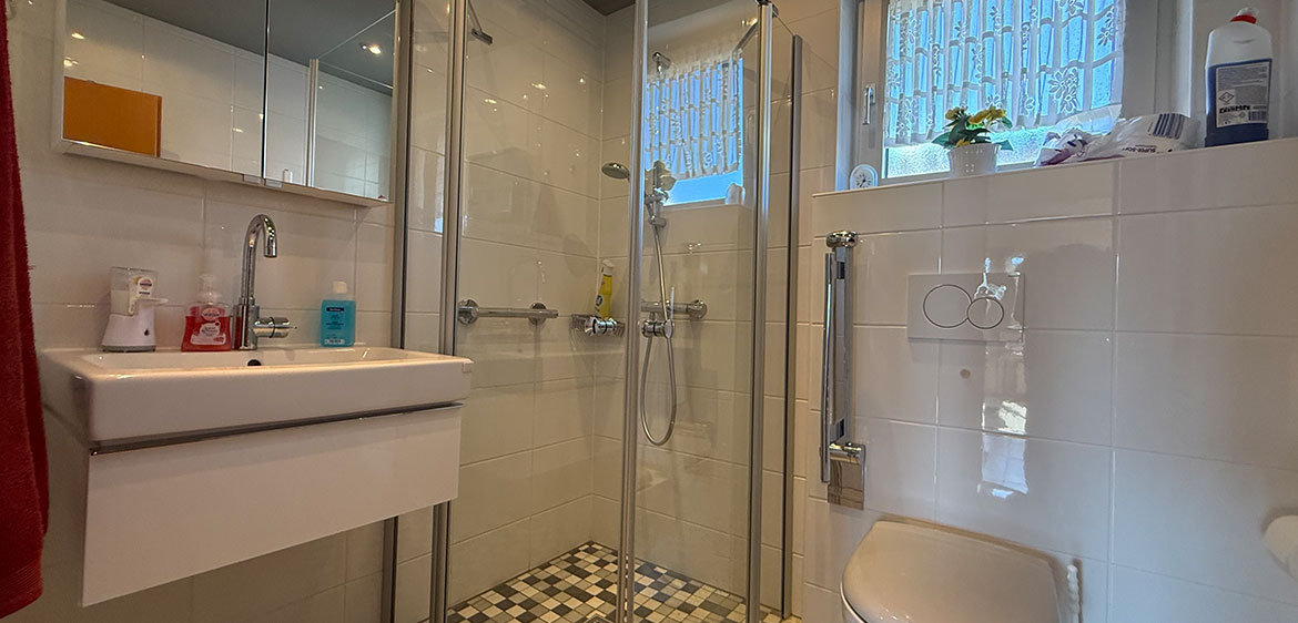 Badezimmer mit ebenerdiger Dusche.