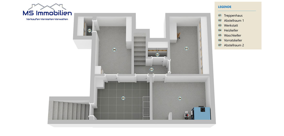 eine Werkstatt, den Heizungskeller, einen Waschkeller sowie