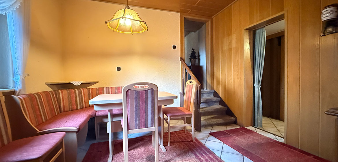 Küche, ein Esszimmer sowie ein einladendes Wohnzimmer. Über