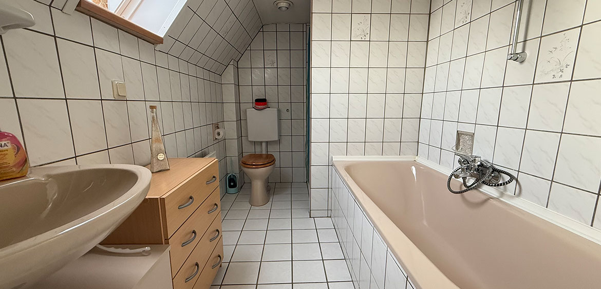 die Treppe gelangen Sie in das Dachgeschoss, wo sich rechts
