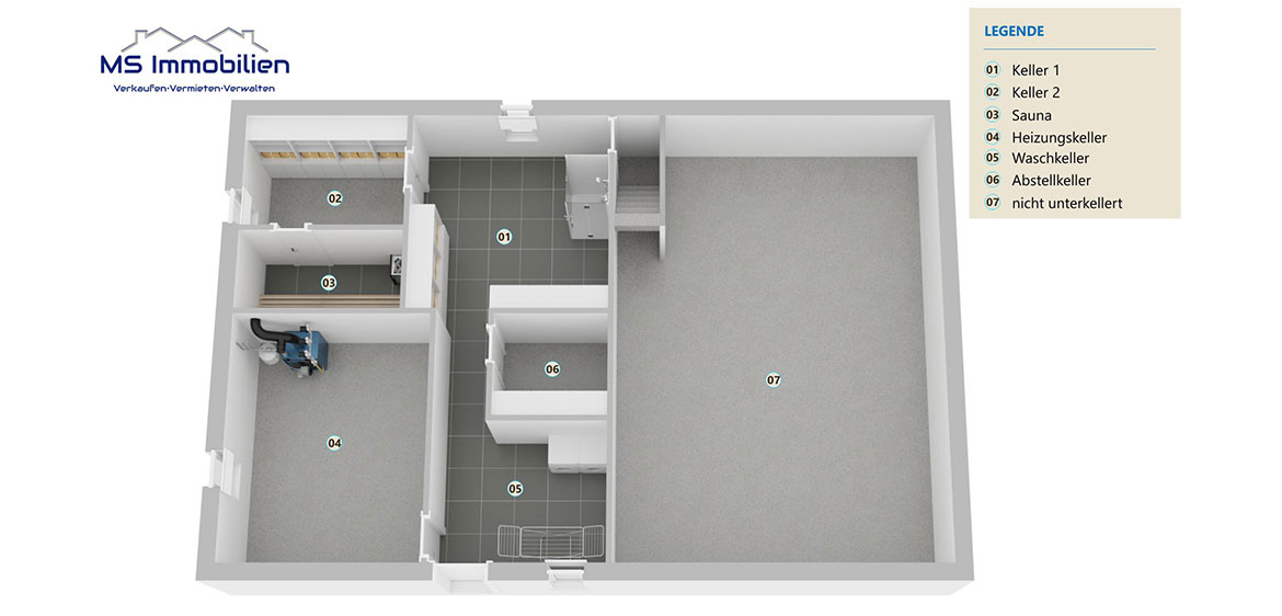 Im Kellergeschoss stehen Ihnen ein Raum mit integrierter Sauna,