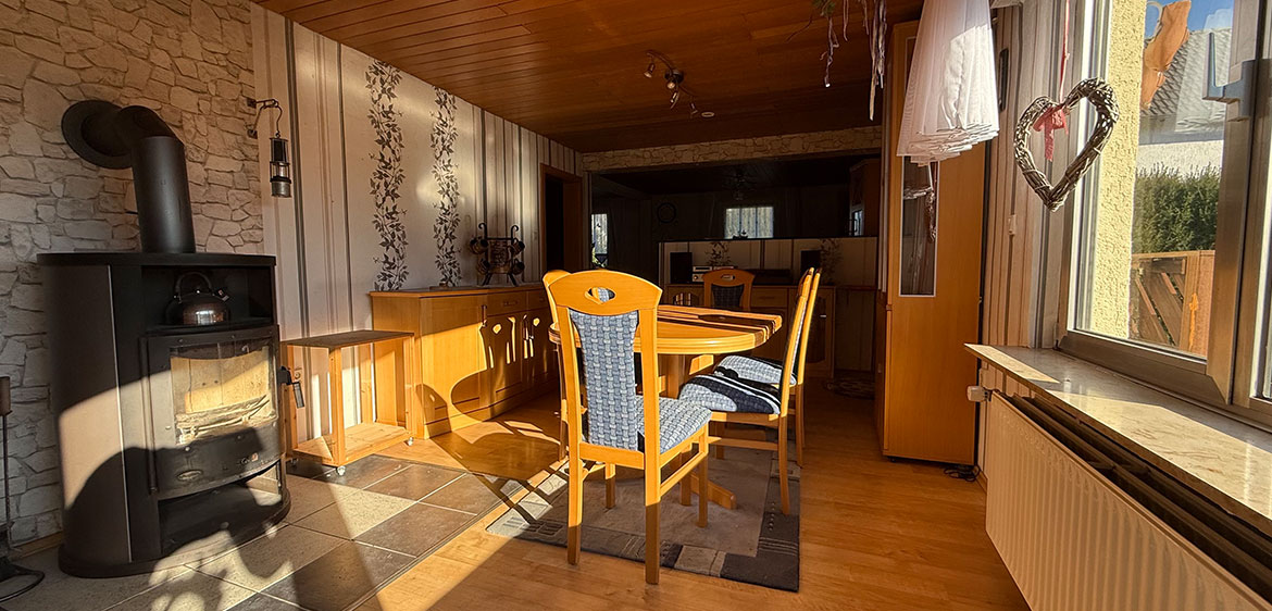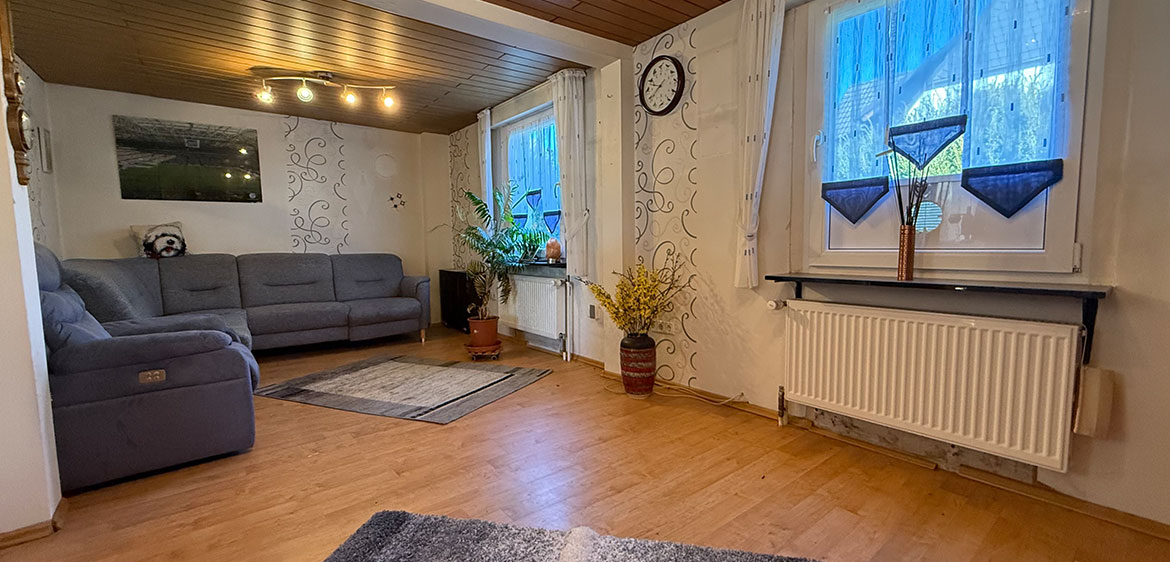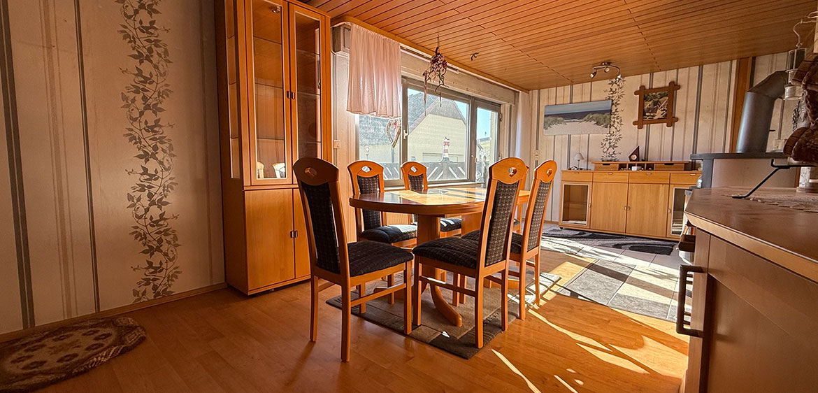 Wohnzimmer ist offen mit dem Esszimmer verbunden und schafft