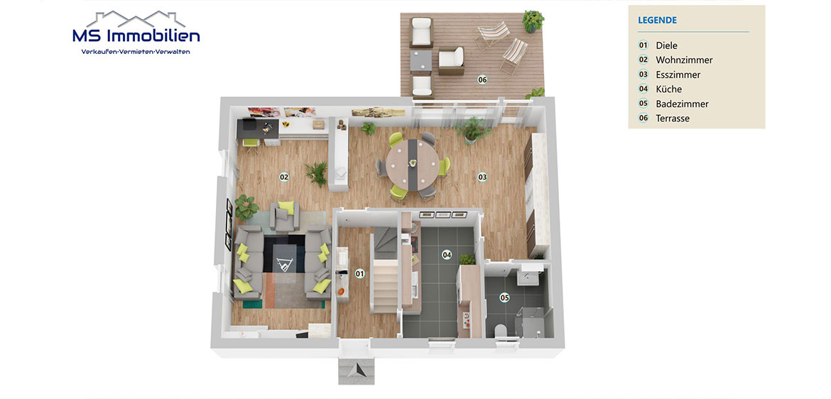 gelangen Sie direkt auf die Terrasse, die den Übergang zum