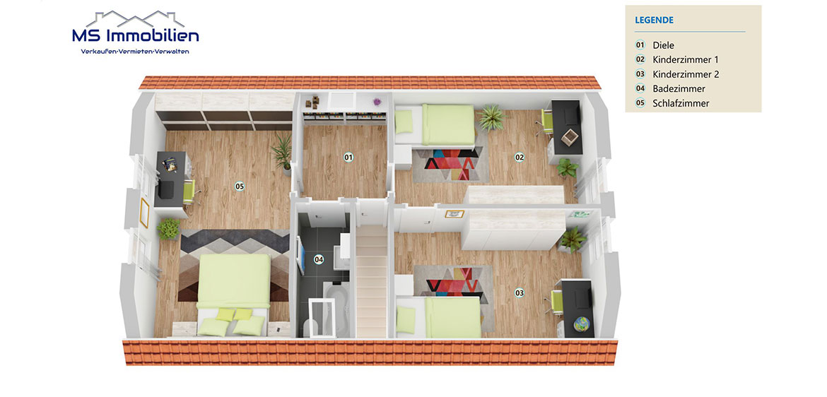 Familie. Hier stehen Ihnen ein Schlafzimmer, zwei Kinderzimmer