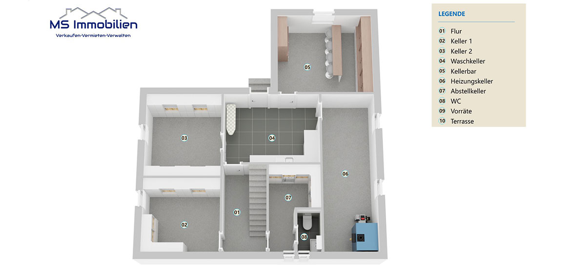 separates WC, einen Waschkeller sowie einen Heizungskeller. Ein