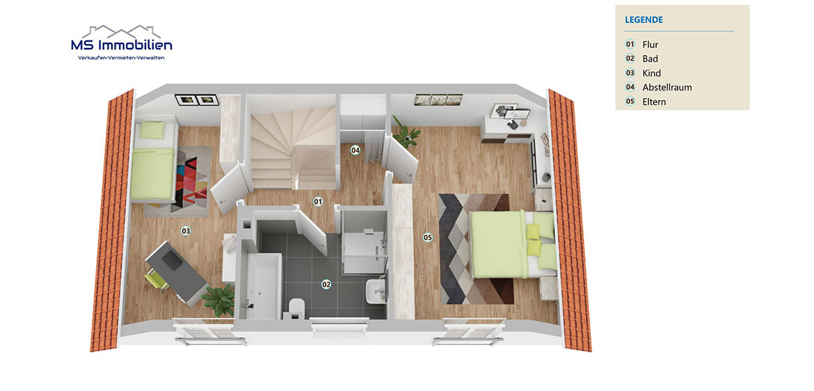 Das ausgebaute Dachgeschoss bietet weitere vielseitig nutzbare